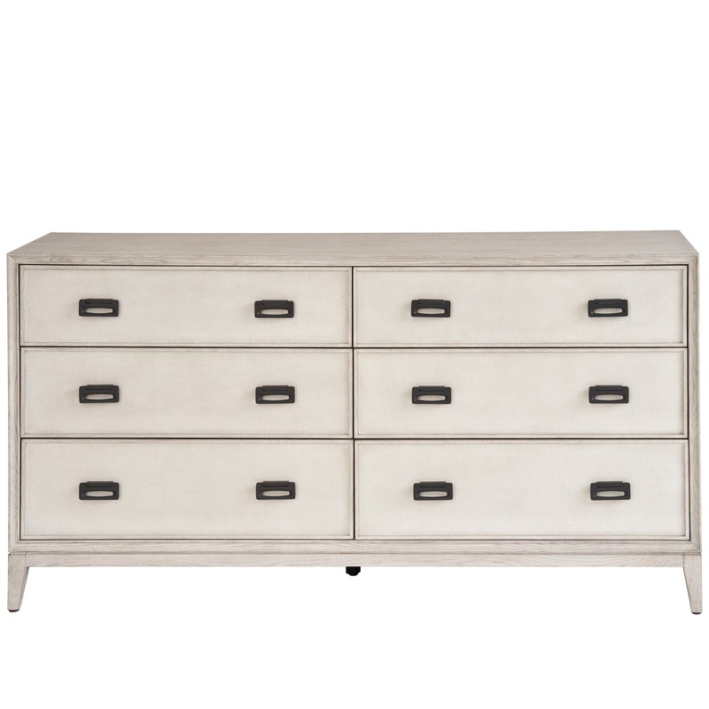 The Estelle Dresser, adorned in the serene Rolling Fog finish, elegantly houses six drawers with faux linen texture fronts, offering a sophisticated storage solution that echoes the refined tranquility of the Coalesce collection.Product FeaturesDressersCoa