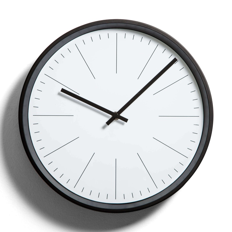 Inspired by the wristwatch, the Watch wall clock is bordered by a matte black metal frame to help you stay on schedule.