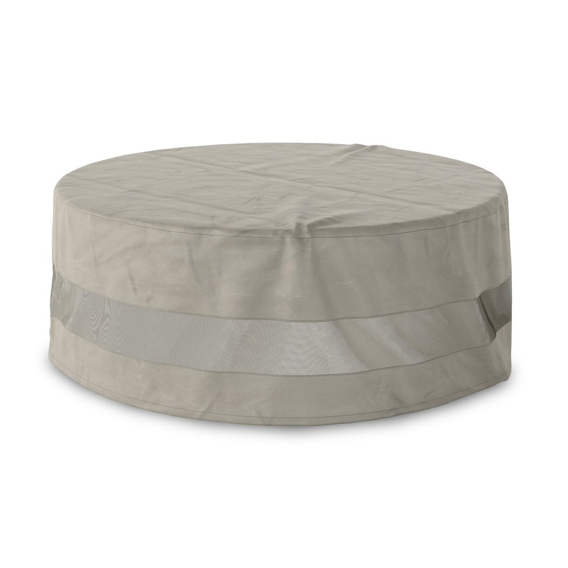 Outdoor furniture protection for all seasons. This weatherproof round coffee table cover is designed to fit pieces up to 36.25" in diameter and 16.75" high. It's recommended to keep the bottom from touching the ground, and if the cover is taller than the f