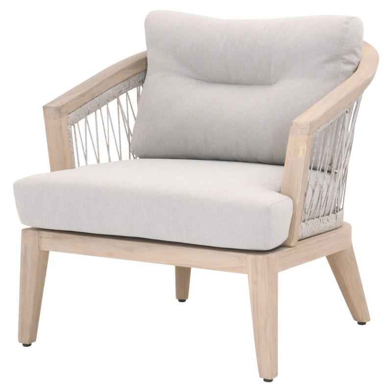 Taupe & White Flat Rope, Pumice, Gray TeakIntricate Rope Weave DesignSuitable for Indoor and Outdoor UseSolid Teak & Aluminum FrameRemovable All-Weather Seat & Back CushionRemovable Cushions not Intended for Heavy Rain or Extreme Weather - Store Away When
