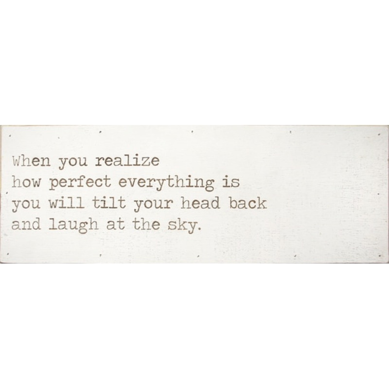 White love letter says,"When you realize how perfect everything is you will tilt your head back and laugh at the sky."Dimensions:20" x 7" x 2"*All Love Letters are made to order and generally take 8-10 weeks.